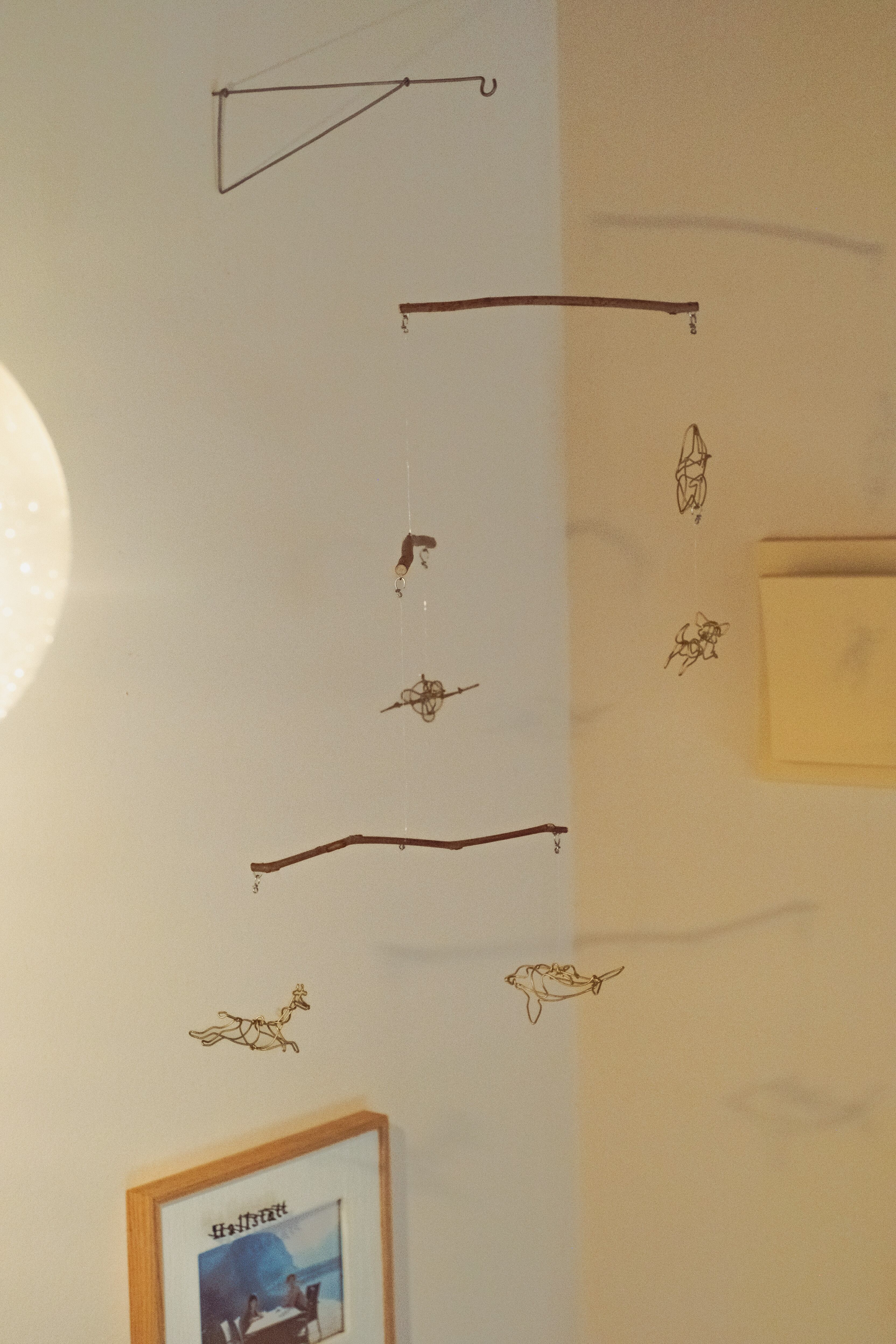 1.最初から、モビールをつける高い位置で取り付けるのは難しいので、