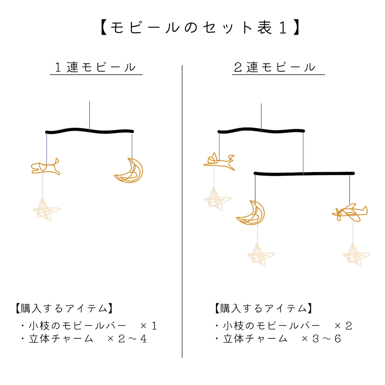小枝のモビールバー(以降①)のフックを引っ掛ける。