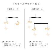 2.①の片側にチャーム、もう片方に2つ目のモビールバー(以降②)を引っ掛けて、